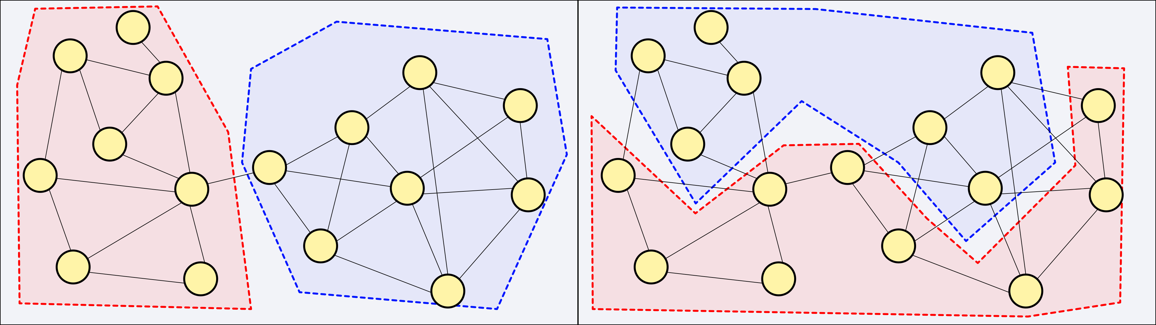 Prenons l’exemple d’un système constitué de deux personnes réunies dans une pièce et en train d’avoir une discussion. Ce système est a priori plus complexe qu’une seule personne, et pourtant il est facilement séparable en deux sous-systèmes partageant peu d’informations. Le système constitué des deux personnes aura donc un Φ faible, ce qui est cohérent avec notre intuition que les individus sont conscients, mais qu’il n’existe pas de “super-conscience” associée à une réunion d’individus.